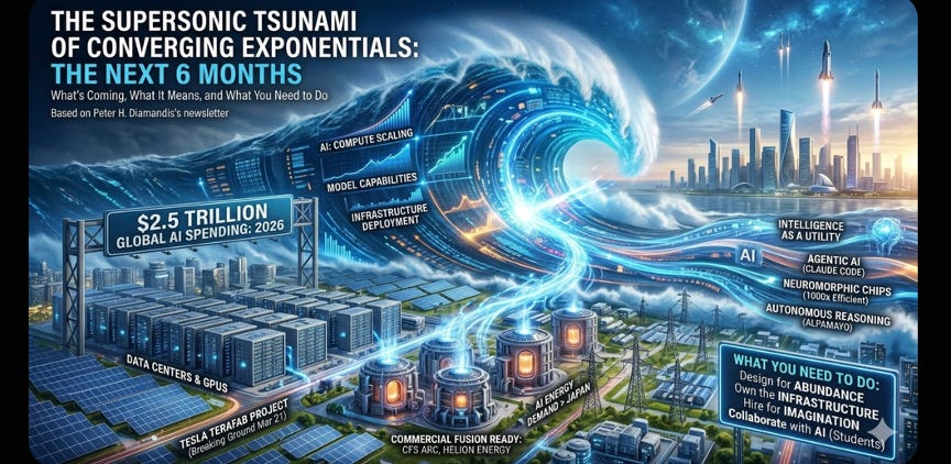 When I interviewed Elon at the beginning of this year, he described what’s coming as a Supersonic Tsunami of converging exponentials. Below is a look at the next six months – what it is, what it means, and what you need to do.